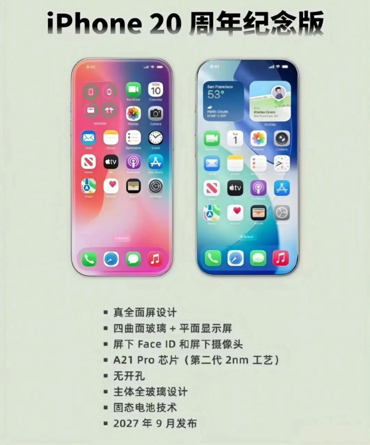 iPhone20周年纪念版除了真正的全面屏设计,在屏幕形态上也有很大的改变,可能会是大家不认识的苹果了。